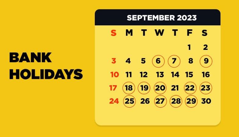 സെപ്റ്റംബറിലെ ബാങ്ക് അവധികളുടെ ലിസ്റ്റ് ഇതാ: