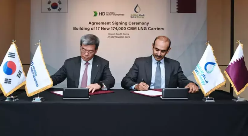 ദോഹ: കൊറിയൻ കപ്പൽ നിർമാണ കമ്പനിയായ എച്ച്.ഡി ഹ്യൂണ്ടായ് ഹെവി ഇൻഡസ്ട്രീസുമായി അത്യാധുനിക എൽ.എൻ.ജി കപ്പലിന്റെ നിർമാണത്തിൽ കരാറിൽ ഒപ്പുവെച്ച് ഖത്തർ എനർജി.