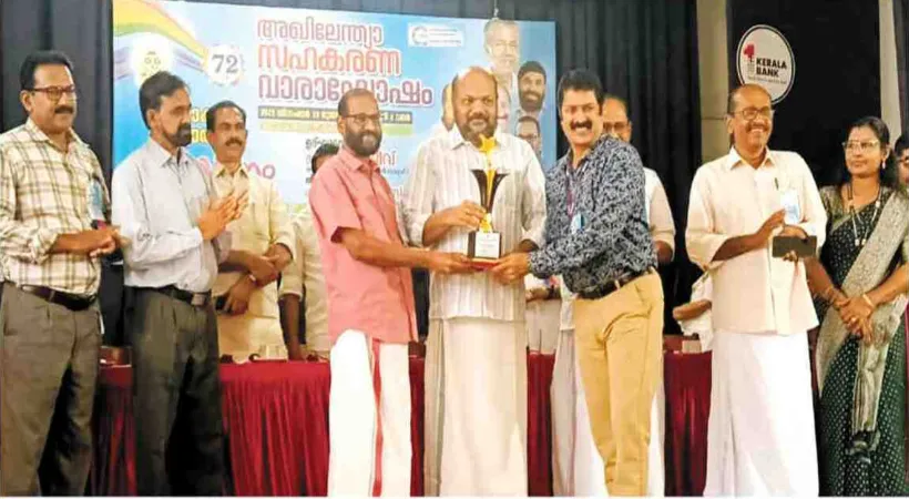 കൊച്ചി: എറണാകുളം ജില്ലയിലെ ഏറ്റവും മികച്ച അർബൻ കോപ്പറേറ്റീവ് ബാങ്കിനുള്ള പുരസ്കാരം നേടി തൃപ്പൂണിത്തുറ പീപ്പിൾസ് അർബൻ ബാങ്ക്. 72-ാം സഹകരണ വാരാഘോഷത്തിനോട് അനുബന്ധിച്ച് കാക്കനാട് കേരള ബാങ്ക് ഓഡിറ്റോറിയത്തിൽ നടന്ന ചടങ്ങിൽ വ്യവസായ മന്ത്രി പി രാജീവിൽ നിന്ന് പീപ്പിൾസ് അർബൻ ബാങ്ക് ചെയർമാൻ ടി സി ഷിബു, ചീഫ് എക്സിക്യുട്ടീവ് ഓഫീസർ കെ ജയപ്രസാദ് എന്നിവർ ചേർന്ന് പുരസ്കാരം ഏറ്റുവാങ്ങി.